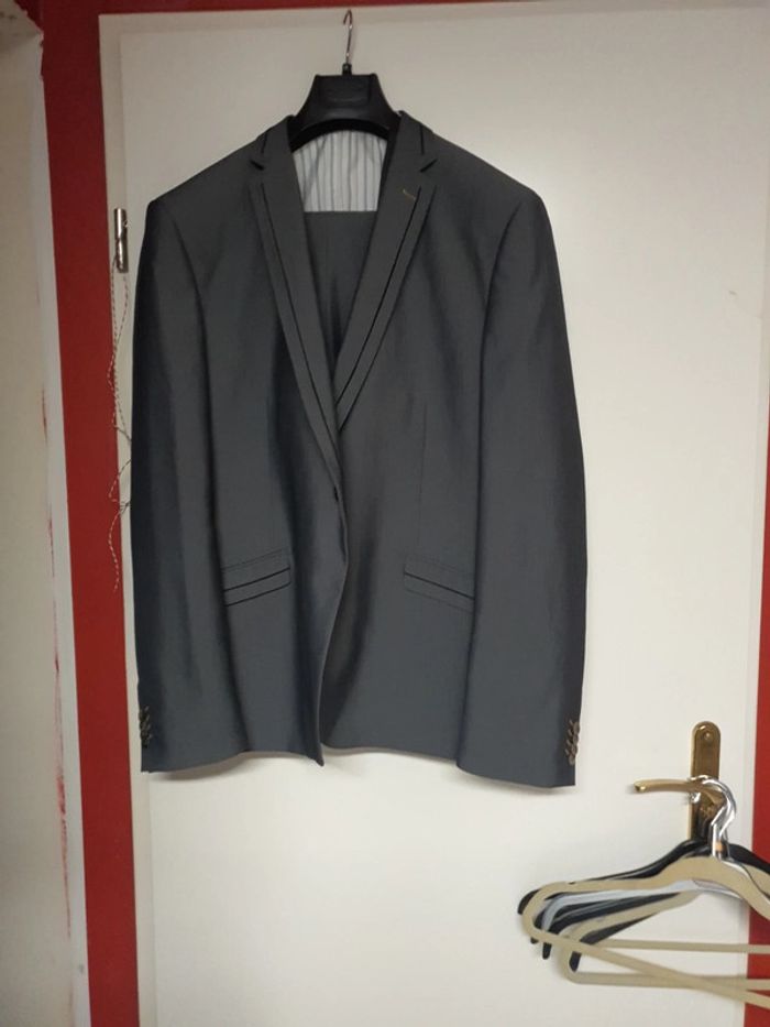 Magnifique costume William carnimolla taille 56 xxl neuf gris souris liseré noir - photo numéro 1