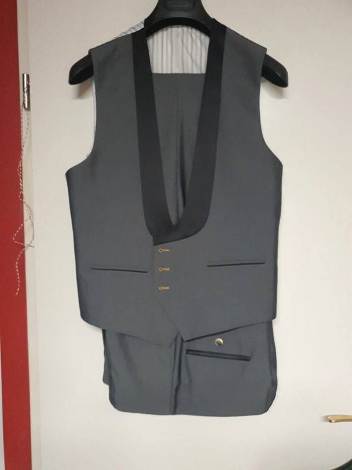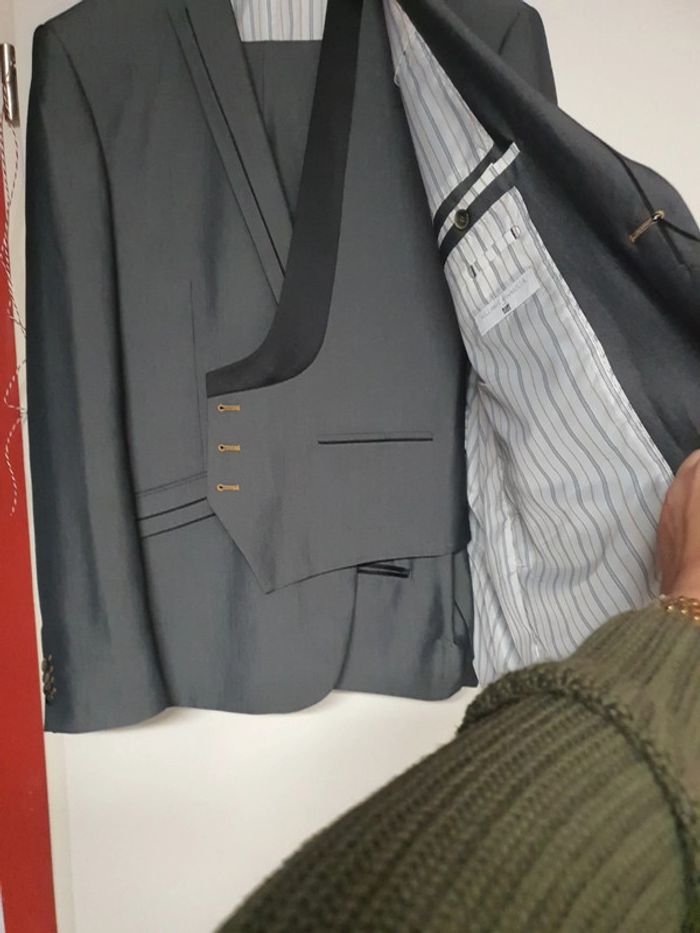 Magnifique costume William carnimolla taille 56 xxl neuf gris souris liseré noir - photo numéro 3