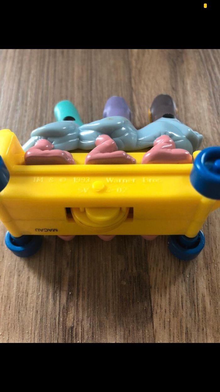 ✨Vintage 1993 figurine en très bon état 🏷3 oiseaux assis sur un skate, en roulant les pattes des oiseaux bougent ✂️8,5 cm de longueur