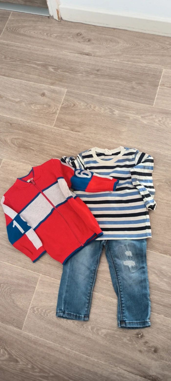 Tenue pratiquement neuf Pull h&m 9 mois Cardigan United colors of Benetton Pantalon jean pareil au même Le tout est en parfait état quasiment neuf aucune tâche ni imperfections Envoie rapide et soigné