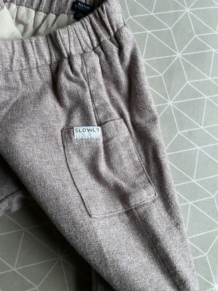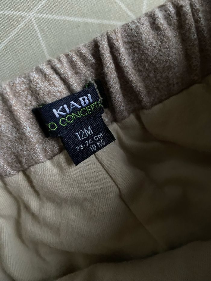 En très bon état, tâches à l’intérieur sur la doublure ne se voit pas quand il est porté, 12€ en boutique Un pantalon détente tout doux pour les petites jambes de bébé - Pantalon beige chiné en feutre éco-conçu - Doublure en tissu - Coton issu de l'agriculture biologique - Taille élastiquée - Découpe asymétrique à l'avant - Boutons factices devant - 2 poches surpiquées sur le côtés - Ourlet revers à la base