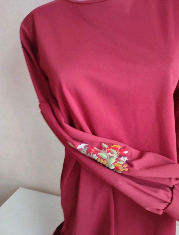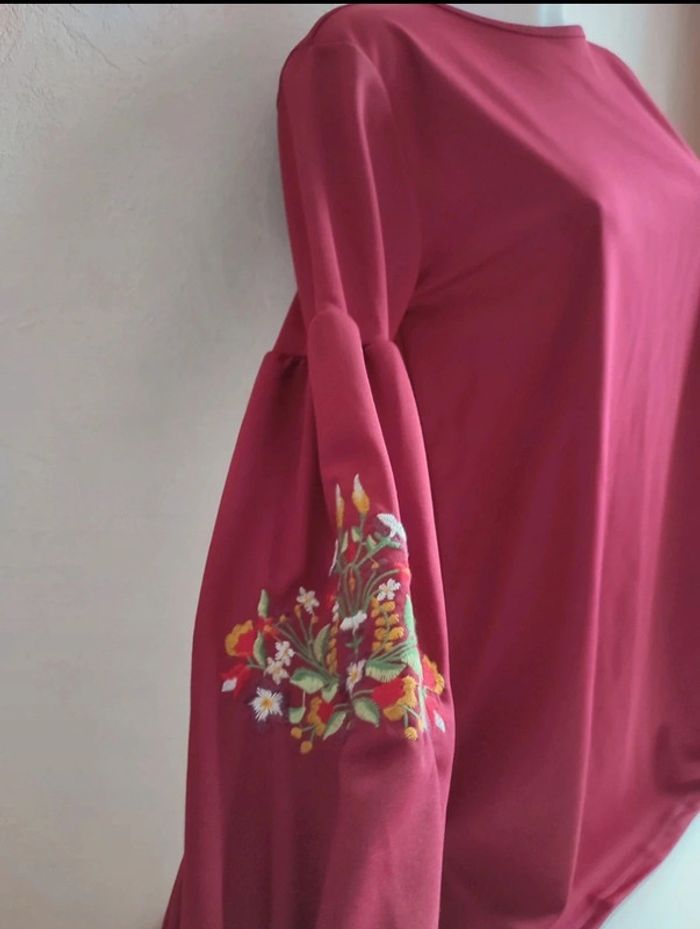 Robe bordeau manches longues broderie - photo numéro 2