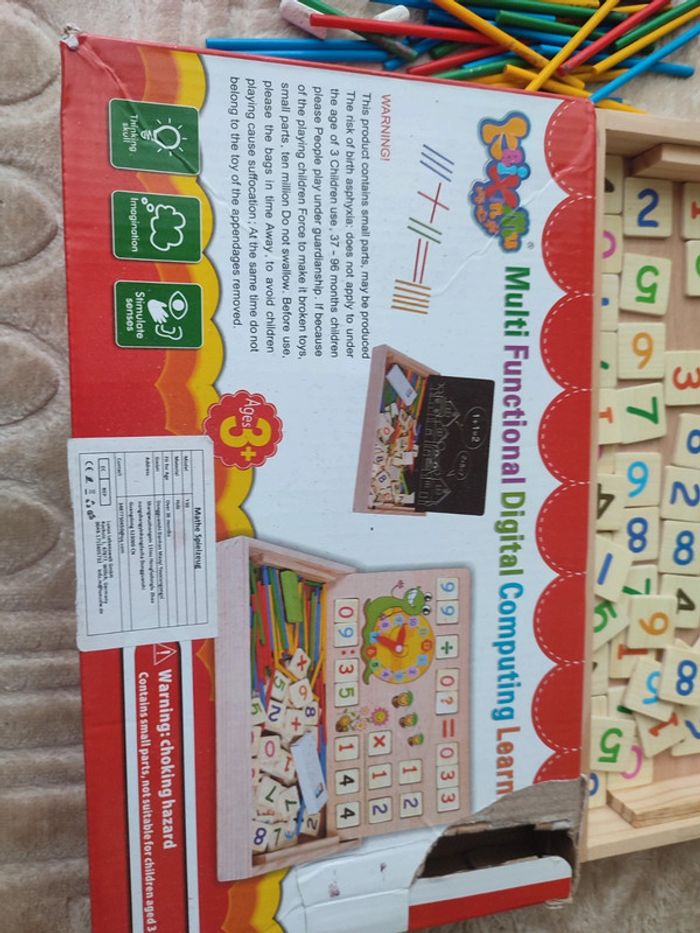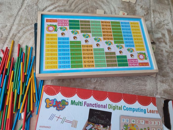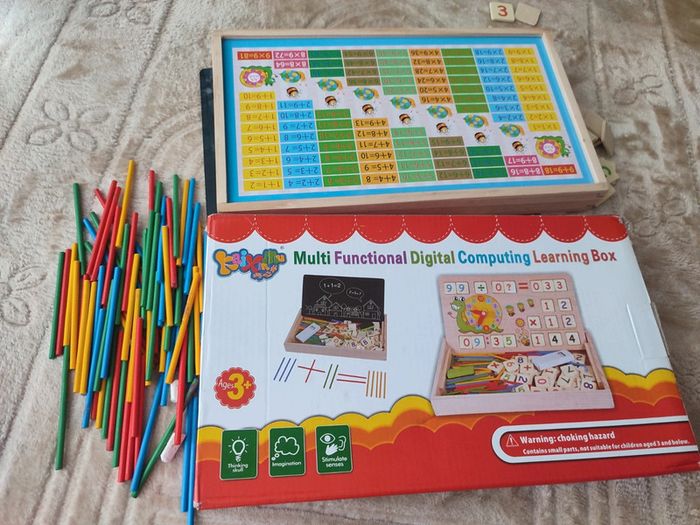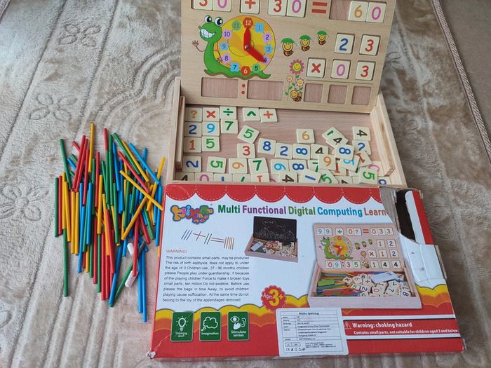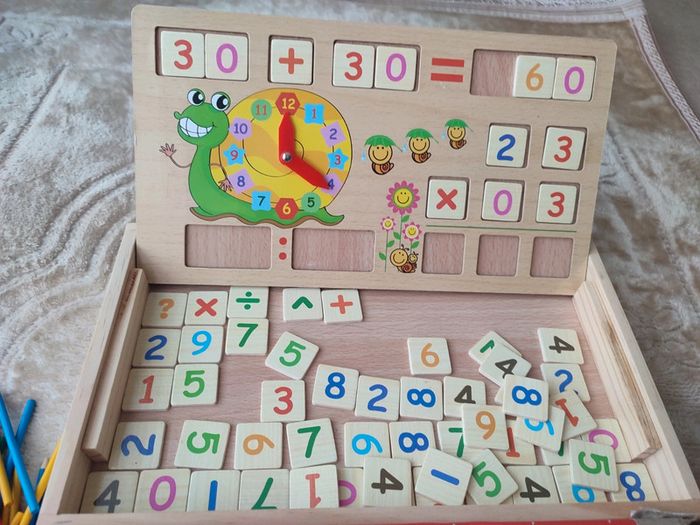 Horloge , apprendre les maths Jouet éducatif Ardoise tableau double face En bon état Joli coffret en bois, les éléments parfaits pour de petites mains, amusant et educatif Manque éponge pour craies