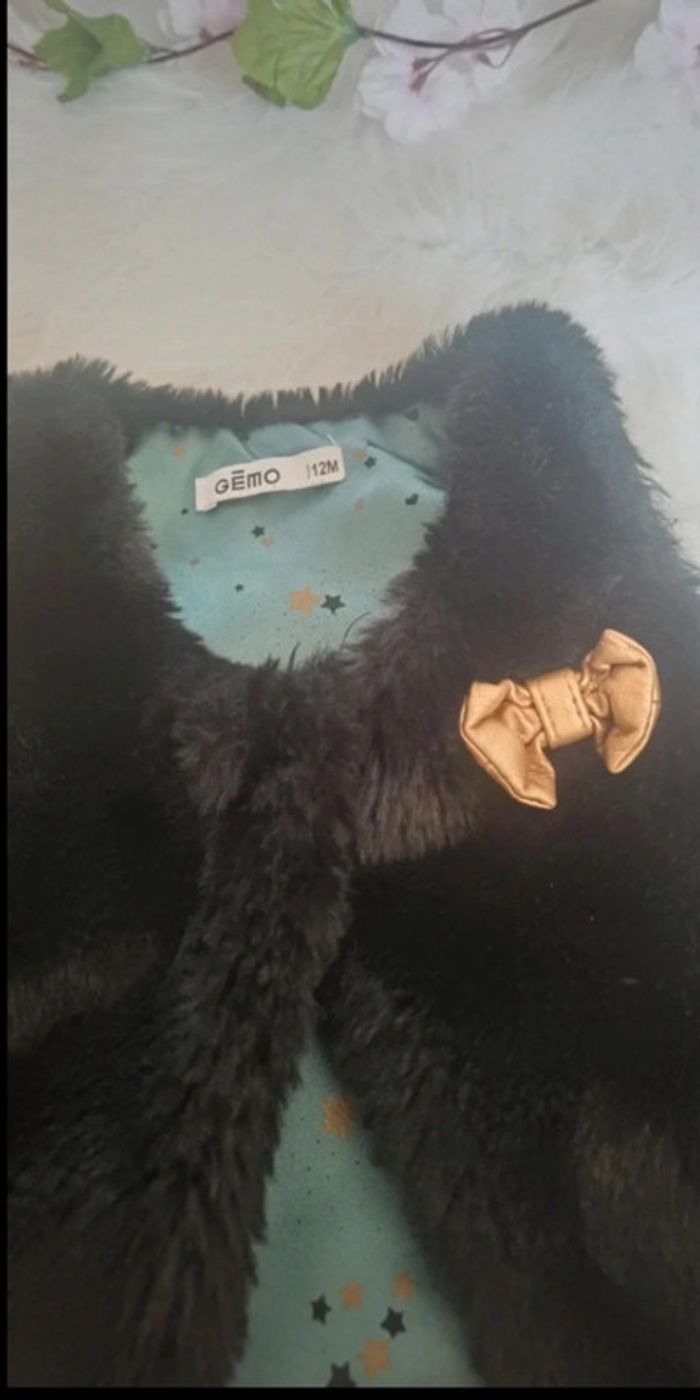 Gilet sans manche 12mois fille noir et or pour aller avec une robe de fête #bébé #bébéfille #vêtements gémo #jonathandru12moisfille #jonathandrunoel