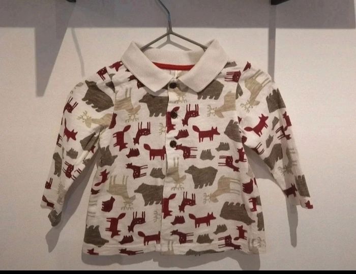Haut manche longue 12mois de chez orchestra ouverture devant entièrement, #bébé #bebegarcon #vêtements #jonathandru12mois #animaux #jonathandrunoel