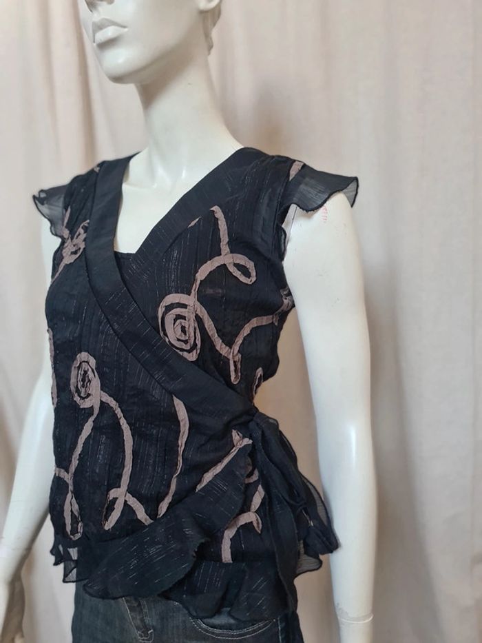 Blouse noir croisée motif marron Taille S - photo numéro 2