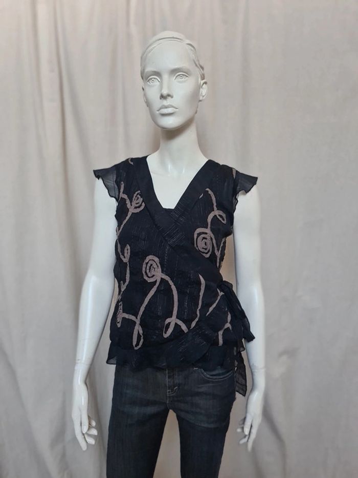 Blouse noir croisée motif marron Taille S - photo numéro 1