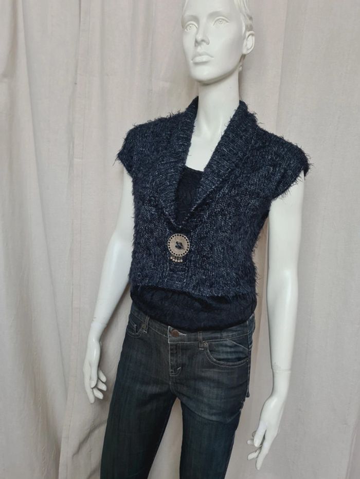 Pull bleu marine chiné avec broché sans manches Taille 36 Excellent état, l'ensemble des vêtements présentés est en annonce #laetab36