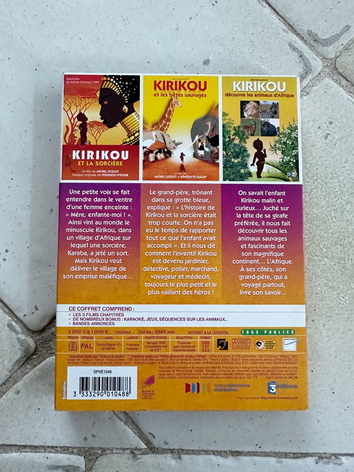 Coffret de 3 DVD - Kirikou - Kirikou et la sorcière - Kirikou et les bêtes sauvages - Kirikou et les animaux d’Afrique France 3 Édition Les coins sont un peut abîmés Très bon état général