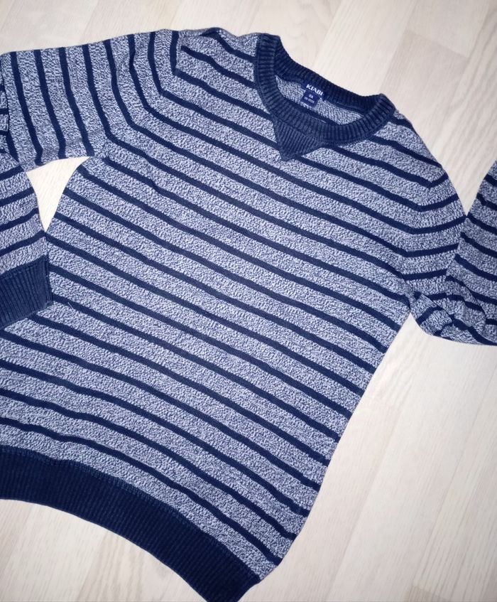 Pull marinière bleu marine et gris chiné Kiabi T. 8 ans