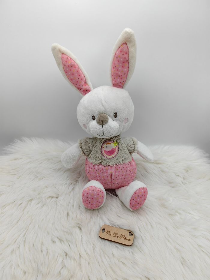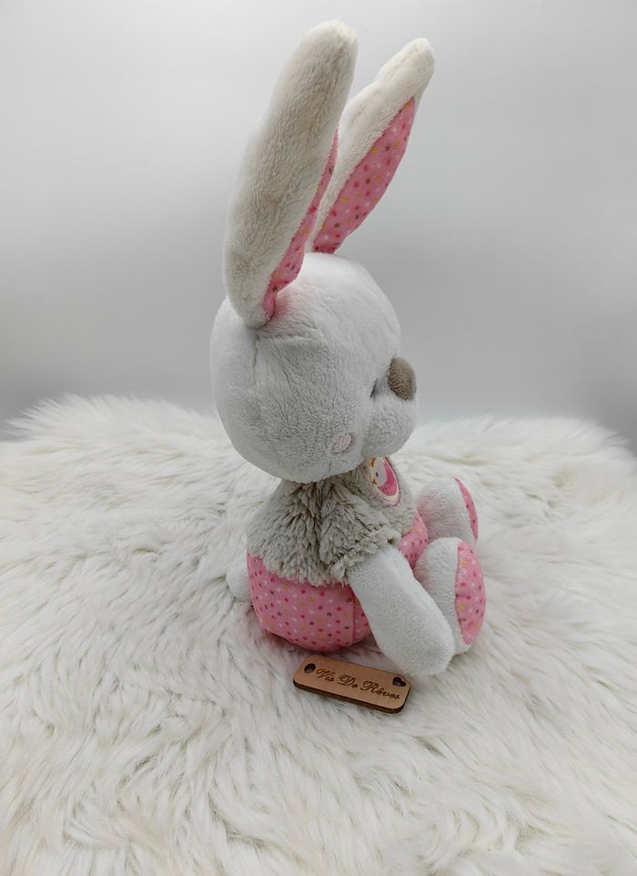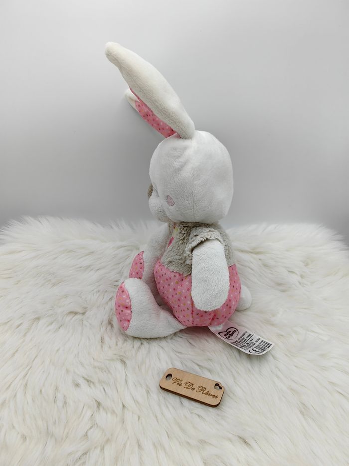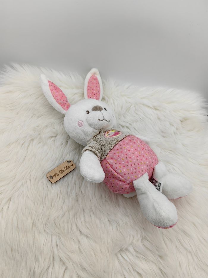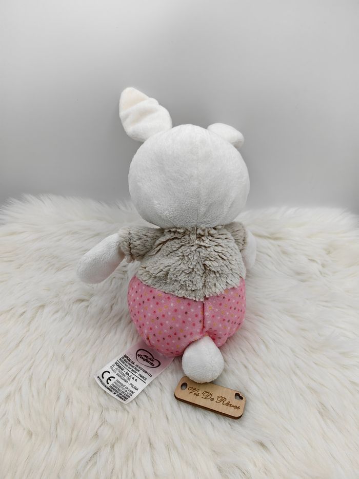 Doudou peluche Lapin Blanc rose Beige Mots d'enfants