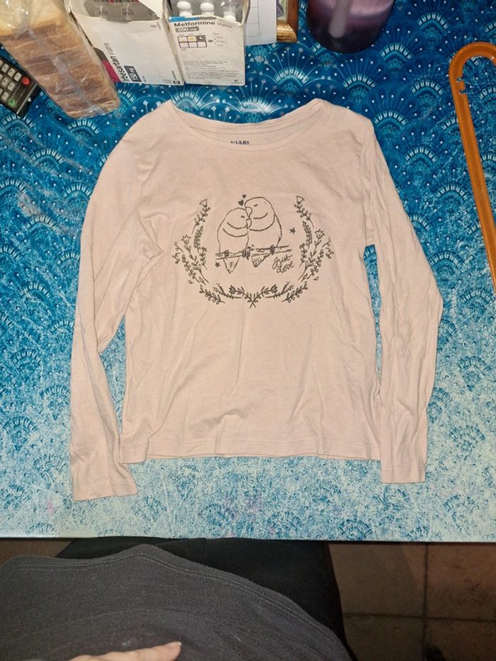 Tee-shirt rose oiseaux 6 ans