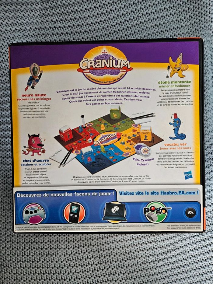 Jeu de société amusant. Boite abîmée par endroits et re-scotchée. Prévoir pâte à modeler pour remplacer la pâte Cranium. #mimidacenfant #mimidacjeux