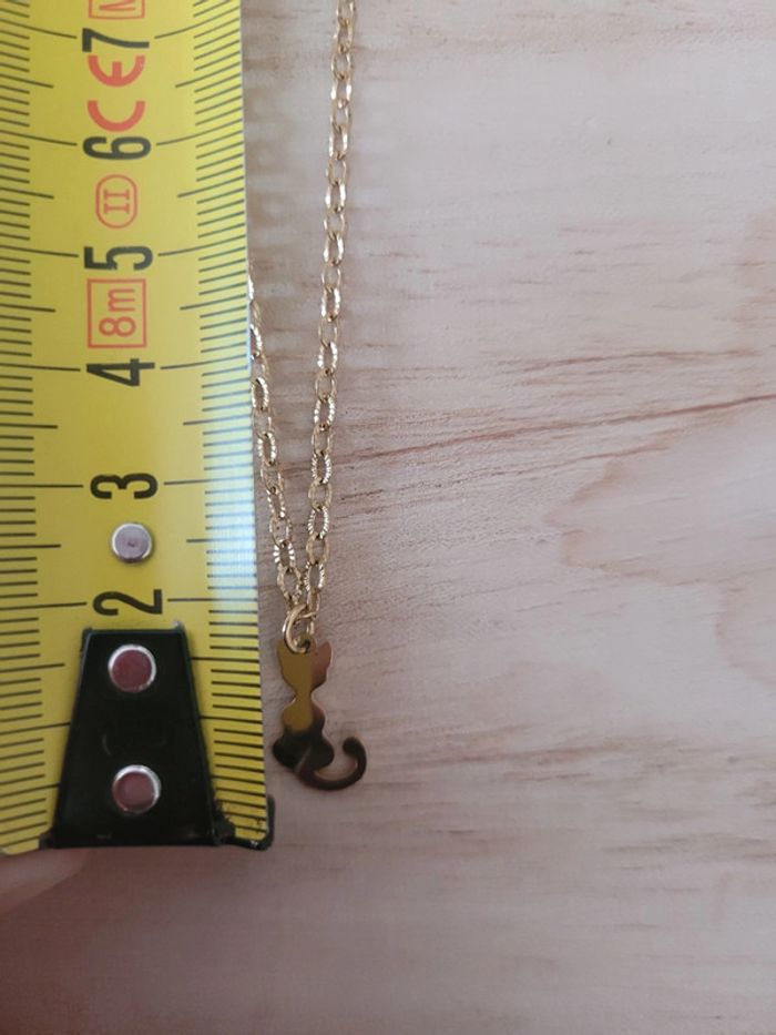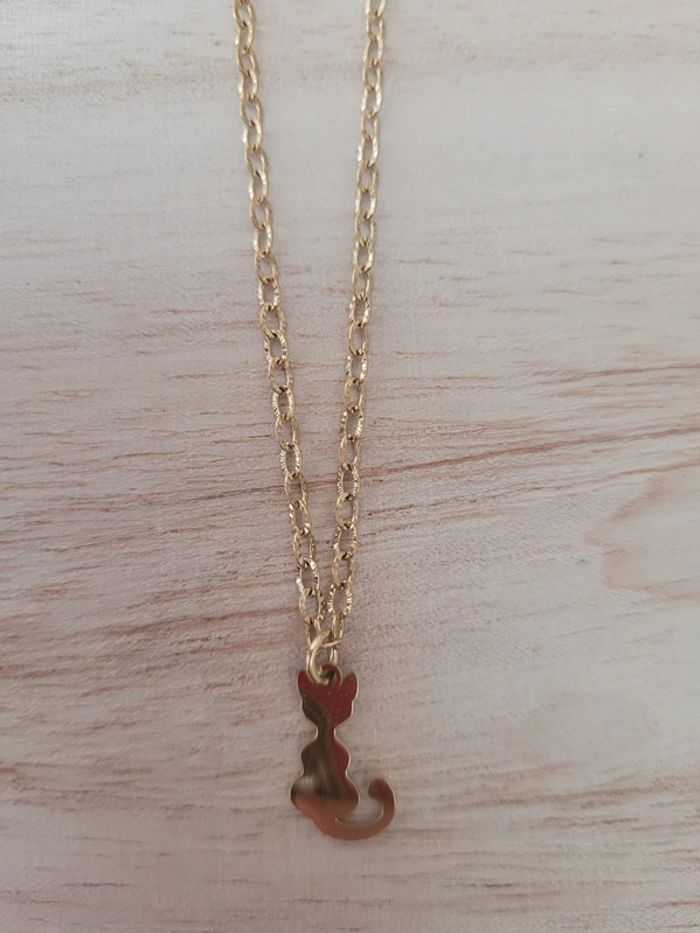 Chaine et pendentif chat en acier inoxydable doré - photo numéro 2