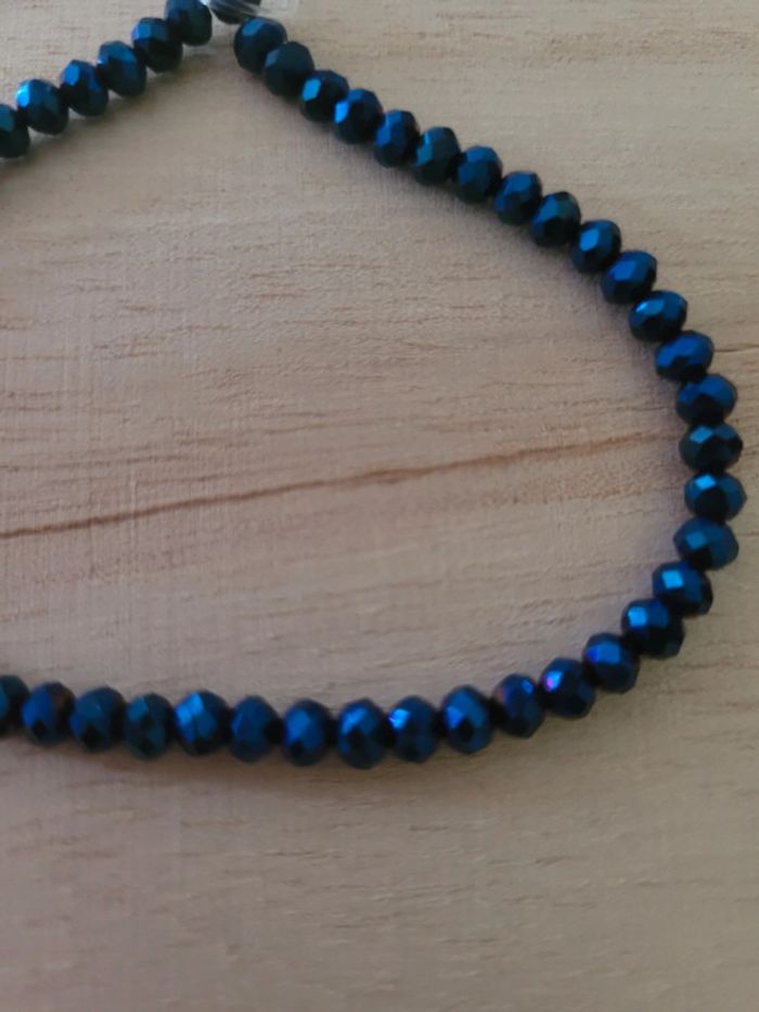 Neuf. Bracelet élastiqué en perles de verre bleues de mille feux. Ne bouge pas même sous la douche. J ai le mien (photo 3) depuis plus d un an et les perles ont toujours le même éclat. Ajusté à la dimension voulue. #isabo66_bijoux
