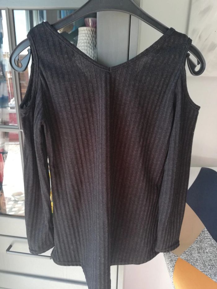 Encolure en V et manches ajourées aux épaules. Gris très foncé. #isabo66_vetementsfemmes