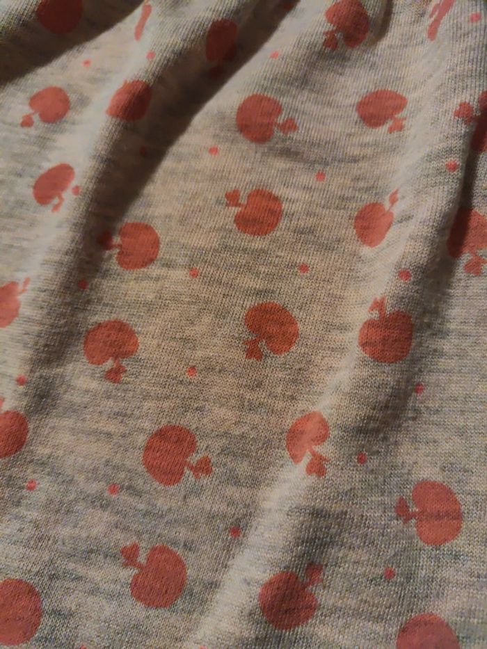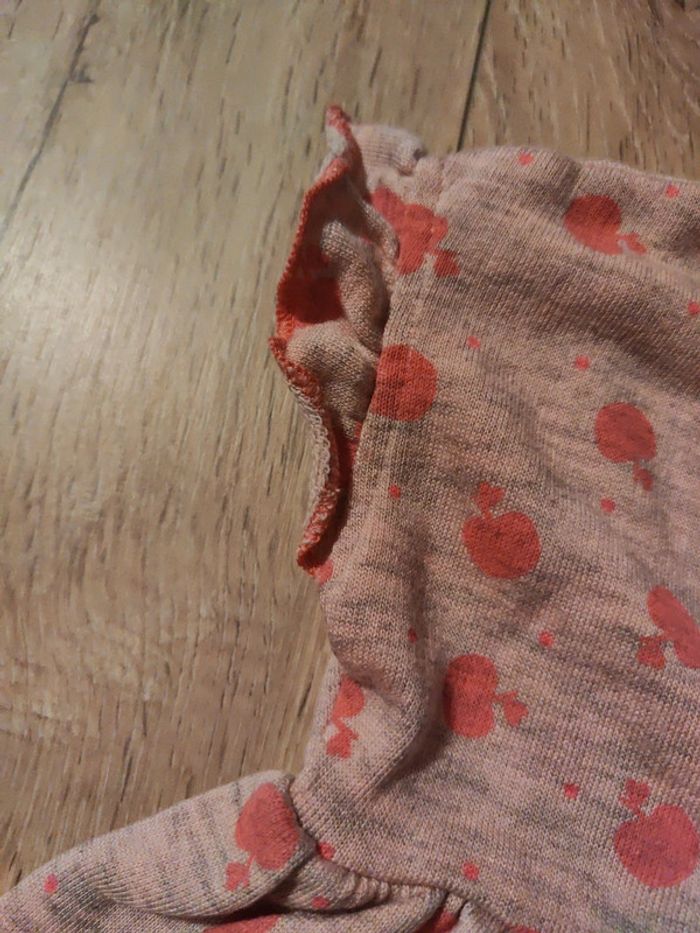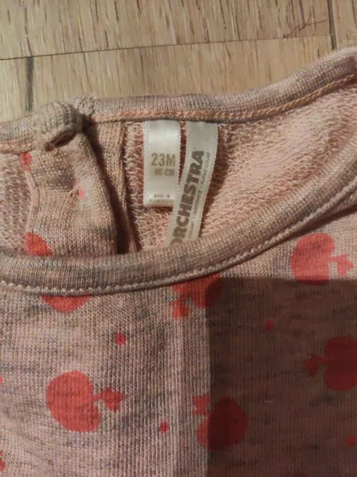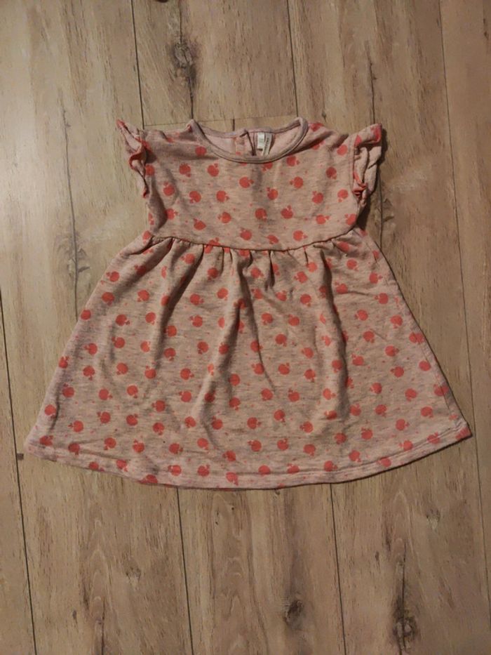 Robe orchestra taille 23mois, rose et gris avec des pommes, tissus épais, sans manches