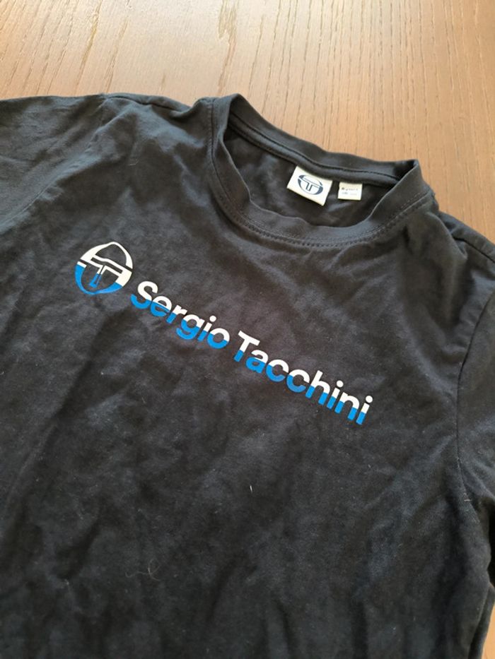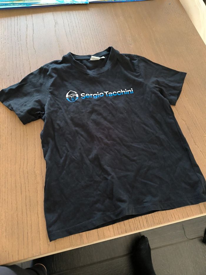 T-shirt manches courtes Sergio Tacchini Fond noir écriture blanc et bleu Neuf jamais porté
