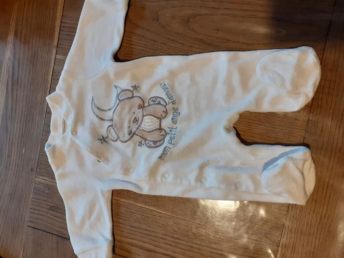- un pyjama bleu ciel de marque sucre d'orge - un pyjama blanc avec ours de marque gémonies Taille 1 mois Très peu porté