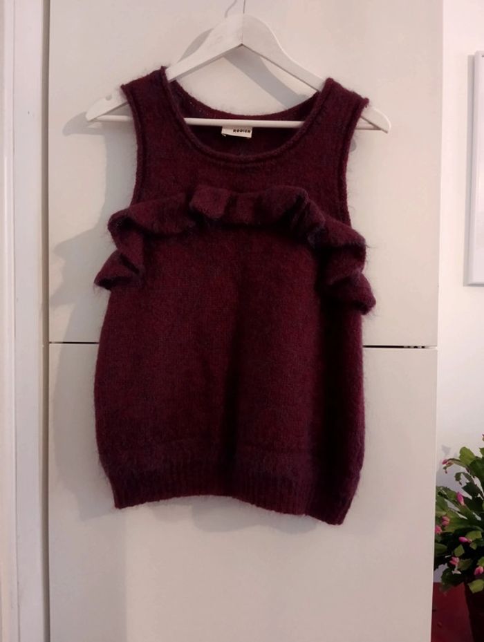 Pull sans manches volanté bordeaux/ bleu rodier - photo numéro 11