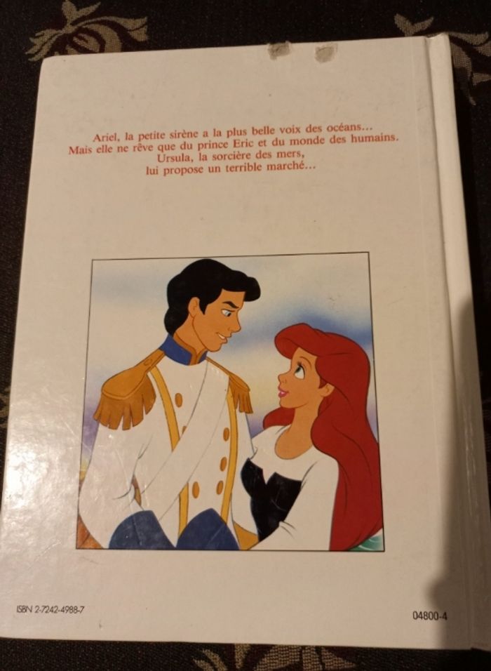 Livre la petit sirène (Disney) en bon état sauf petit déchirer sur la couverture comme le photo, pour enfant 4-6 ans.