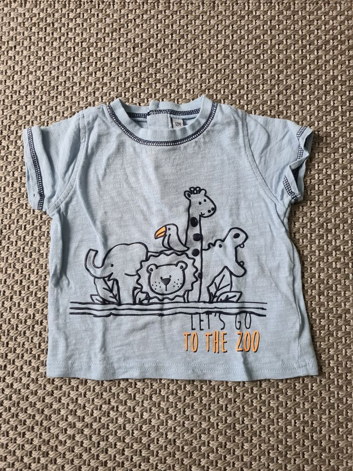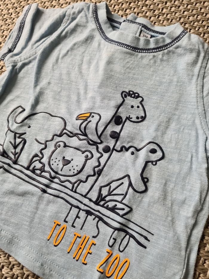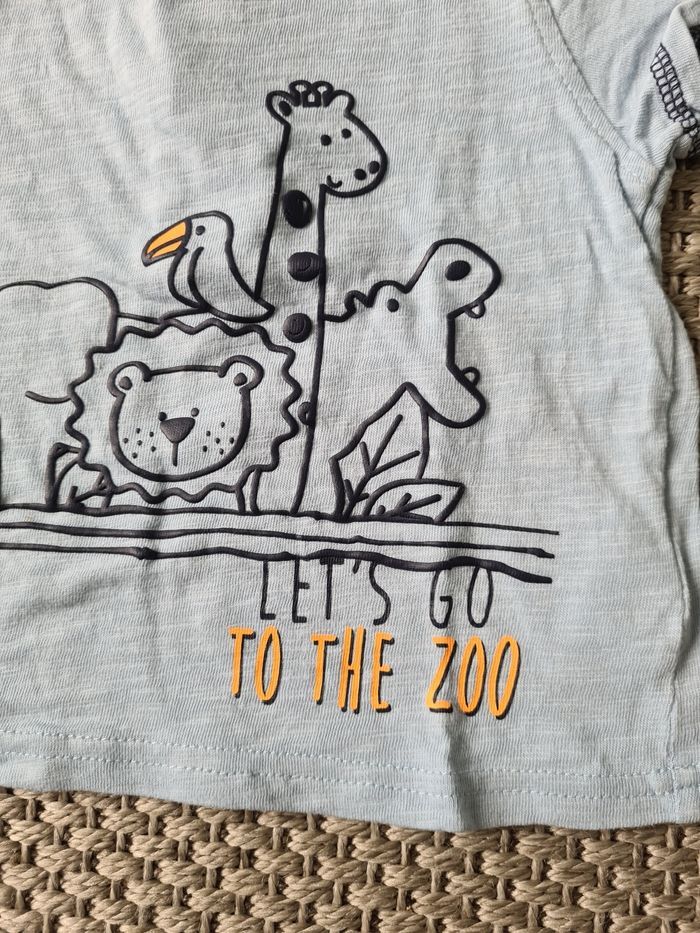 Ensemble t-shirt et short motif "to the zoo" en excellent état. Boutons à enfiler sur le dos. Taille 12 mois - marque inconnue Envoi Rapide et Soigné.