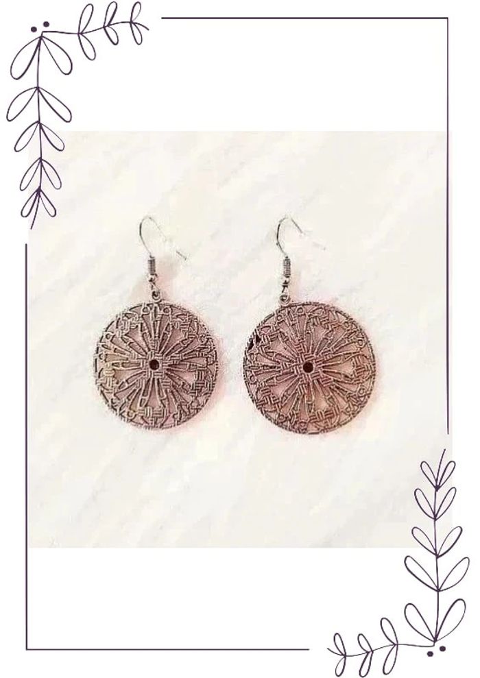 #cencovbijoux Jolies boucles d'oreilles pendantes cercle style vintage antique Longueur 5 cm. Diamètre 3 cm. Neuves