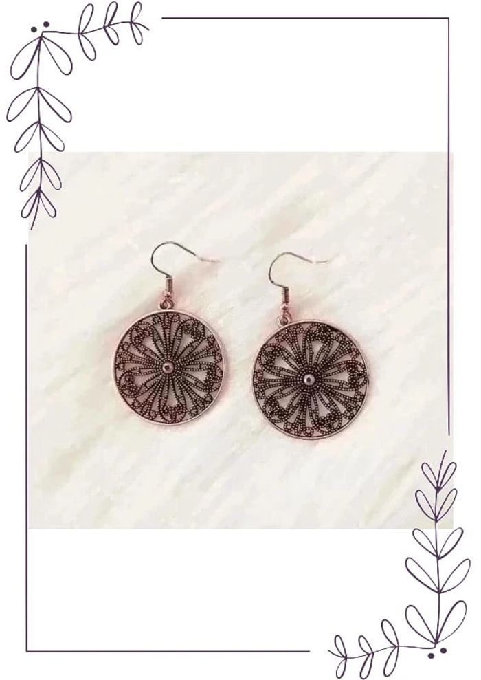 Boucles d'oreilles pendantes cercle ajouré filigrane style vintage antique bohème