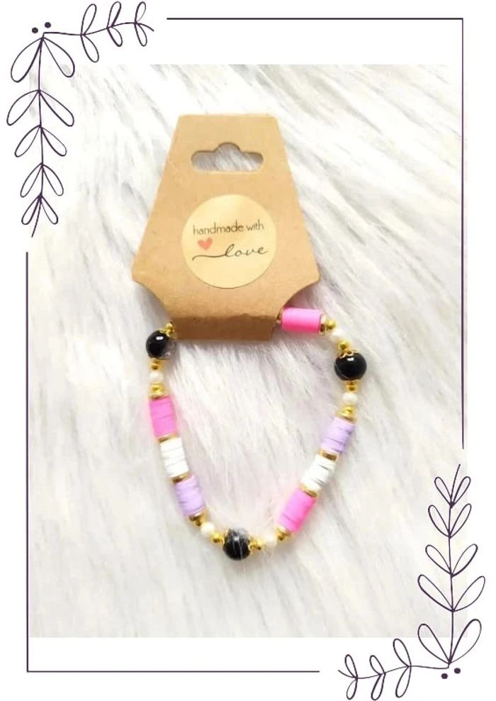 Bracelet élastique en perles plates d'argile - photo numéro 1