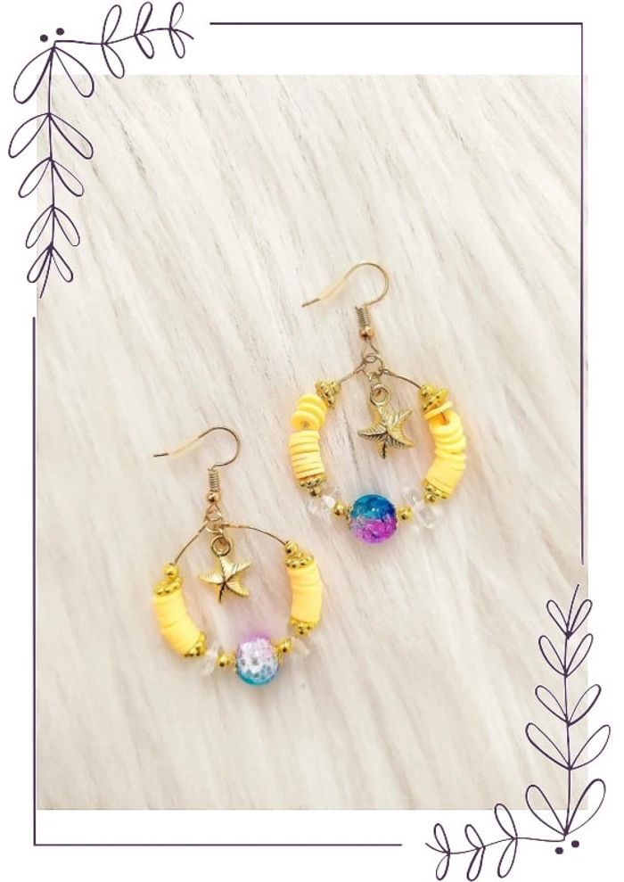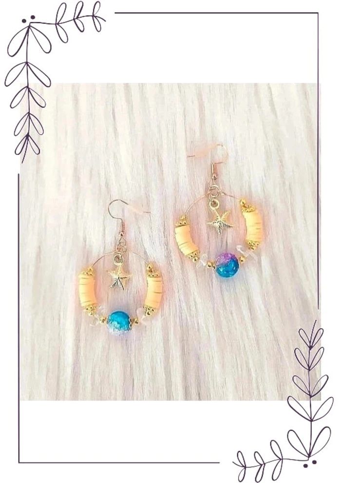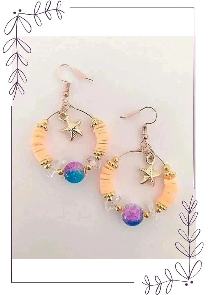 #cencovbijoux Boucles d'oreilles anneaux avec étoile de mer Longueur 5,5 cm. Diamètre 3,5 cm. Neuves