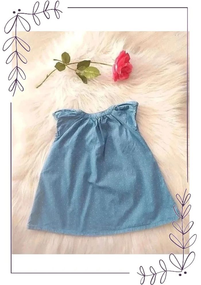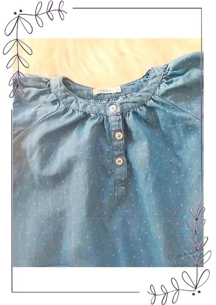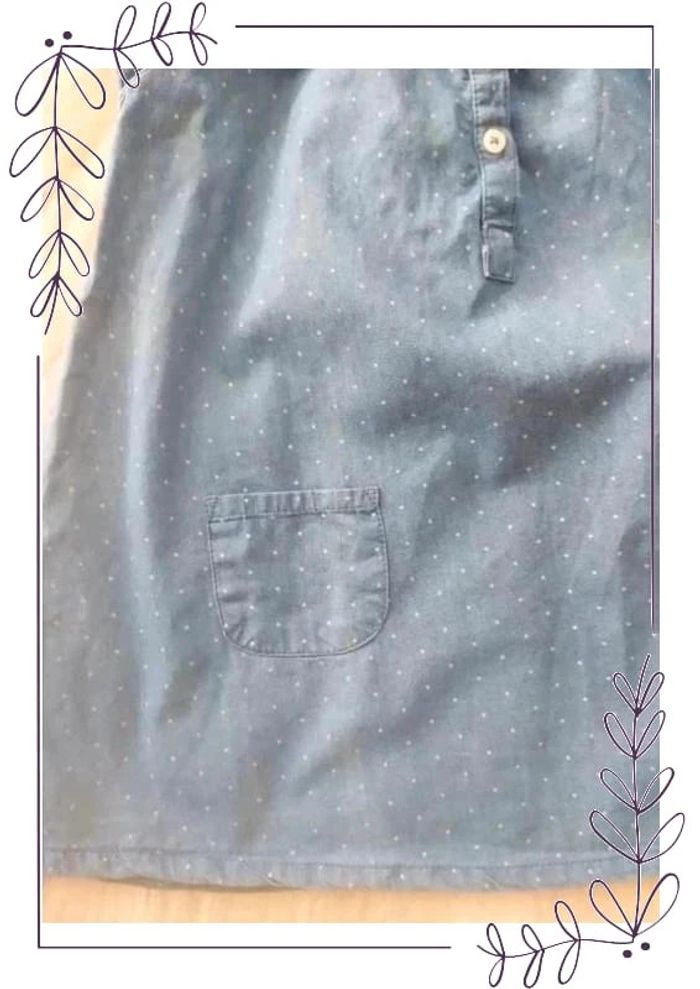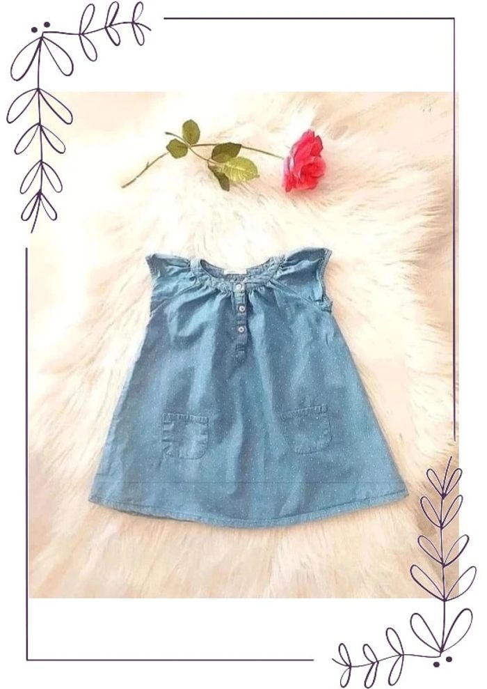 #cencov12mois 💖 Robe manches courtes en coton jean fin à petits pois Bout'Chou taille 12 mois 100% coton. 74 cm. Une légère trace de décoloration dûe au soleil, voir dernière photo