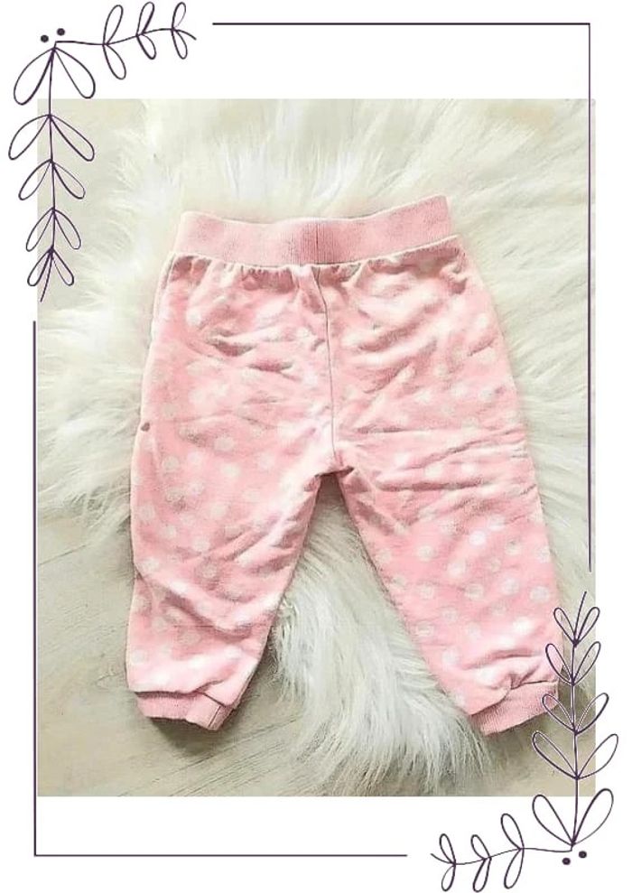 #cencov18mois Pantalon jogging bébé fille 18 mois rose avec pois blancs 1petit accroc à la jambe gauche, voir photo