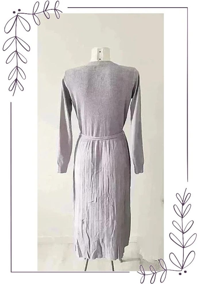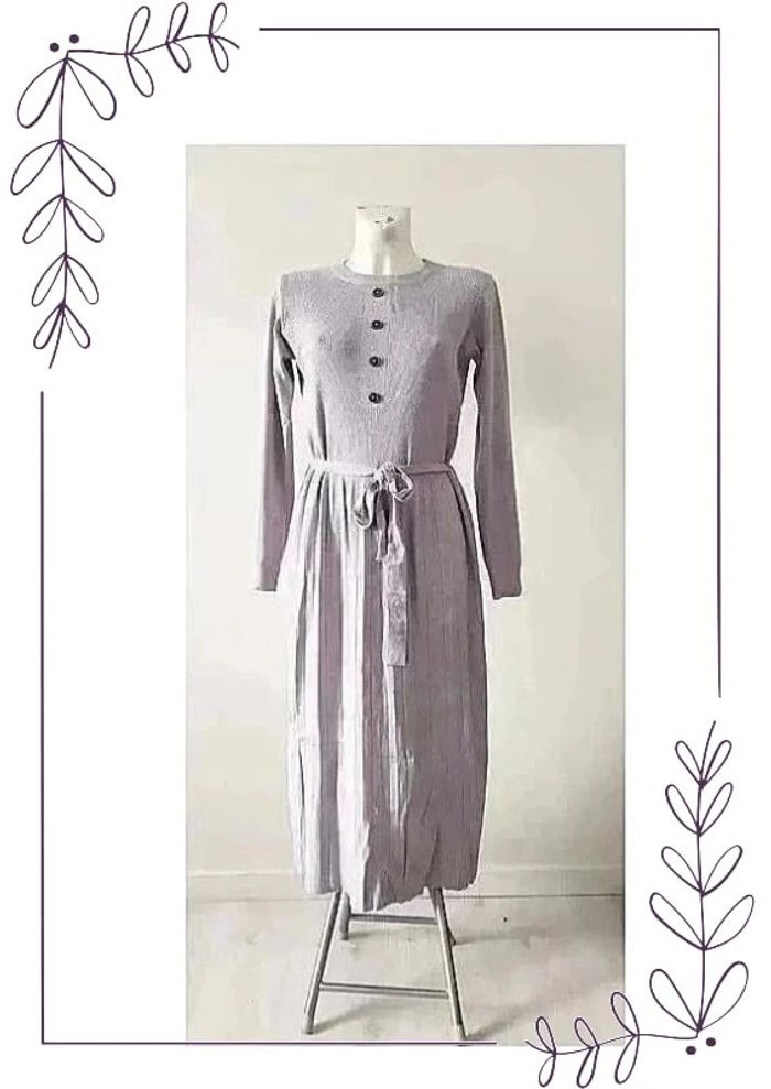 #cencovrobes Robe chic avec ceinture mi-longue en maille taille 40/42 automne-hiver Taille L/XL pouvant convenir aussi bien à un 40 qu'à un 42. Maille extensible Robe manches longues. Boutons décoratifs devant. Haut maille côtelée. Passants pour ceinture, la ceinture peut être remplacée selon vos goûts. Bas de la jupe façon plissée. Longueur 114 cm soit mi-mollet pour 1m65. Largeur épaules à plat 34 cm, aisselles 42 cm, taille 43 cm. La maille est bien extensible pour un ajustement parfait; Composition 28% modal, 22% coton, 20% viscose, 15% polyamide, 15% élasthanne.