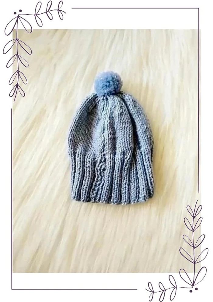 Bonnet mixte bébé naissance en maille avec pompon tricoté main - photo numéro 2