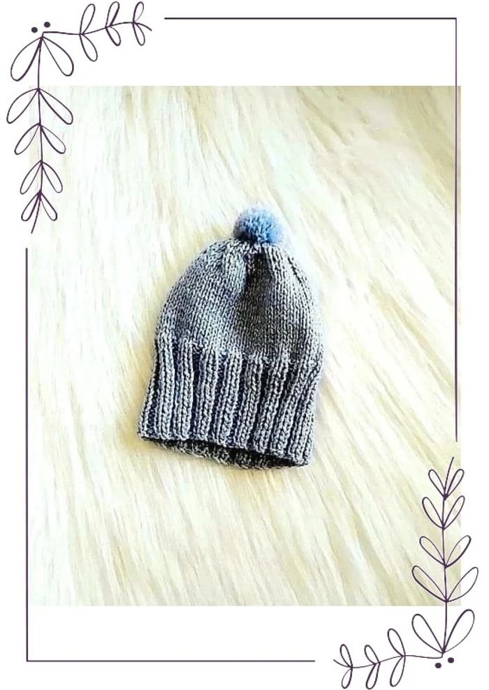 Bonnet mixte bébé naissance en maille avec pompon tricoté main - photo numéro 1