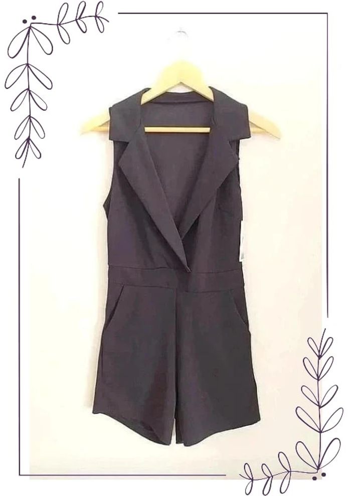 #cencovcombi #cencovpantalons 💖 Combishort chic noir sans manches col chemise Neuf. Fabriqué en Italie. 95% polyester 5%elasthanne. Longueur 90 cm.