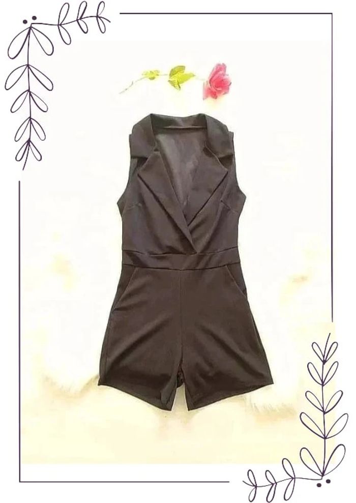 💖 Combishort chic noir sans manches col chemise printemps été - photo numéro 1