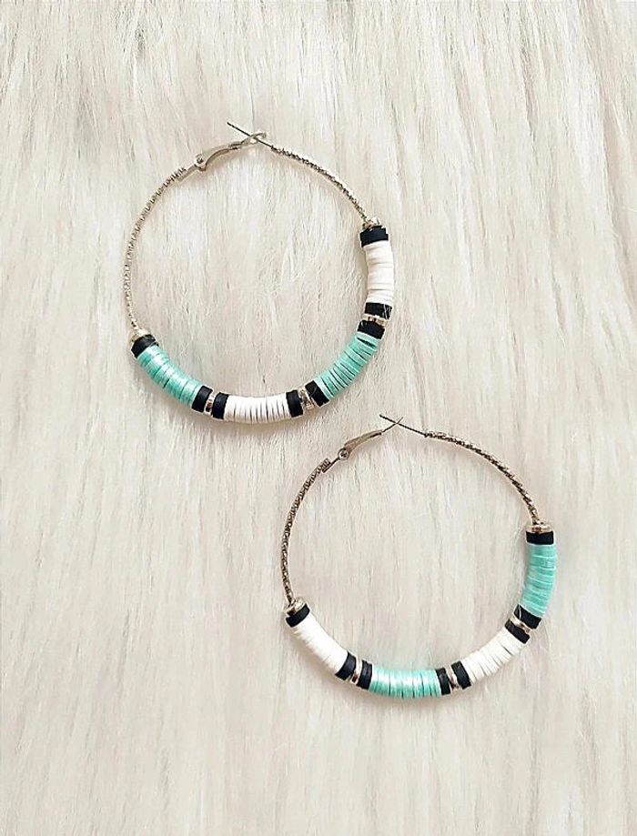 Boucles d'oreilles anneaux créoles en métal ciselé avec perles heishi diamètre 6 cm environ