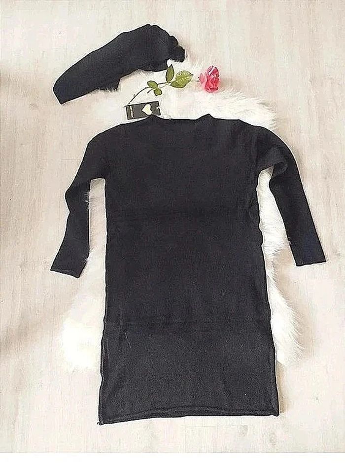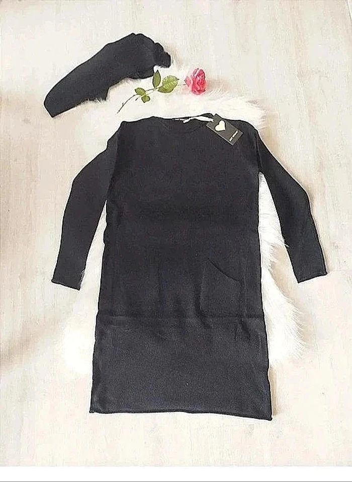 #cencovrobes Robe pull avec écharpe assortie style vintage années 90 Taille unique pouvant convenir du 36 au 40 selon la façon de la porter. Elle pourra également convenir comme robe de maternité ou grossesse pour un 36 ou un 38. Coupe droite, 2 poches devant. Avec écharpe assortie pouvant servir de bandeau de grossesse. Composition 45% viscose, 28% nylon, 27% polyamide, la maille est toute douce :) Neuve avec étiquette sous emballage
