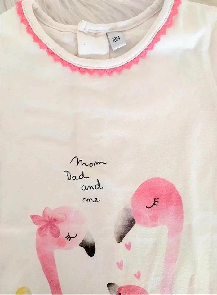#cencov18mois Tee-shirt long tunique flamands roses bébé fille 18 mois Longueur 37 cm environ. 59% coton 41% polyester Légères bouloches.