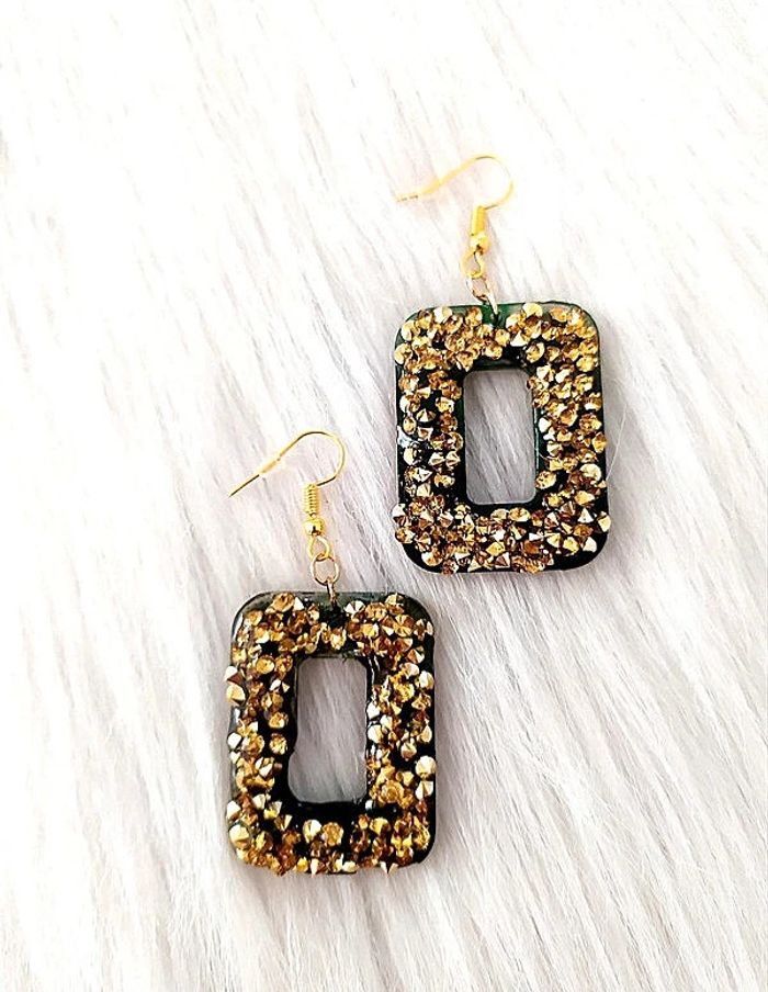 #cencovbijoux Boucles d'oreilles créoles anneaux rectangulaires à strass Neuves, fabriquées à la main en résine époxy avec strass et paillettes. Longueur 6,3 cm. Largeur 2,5 cm.