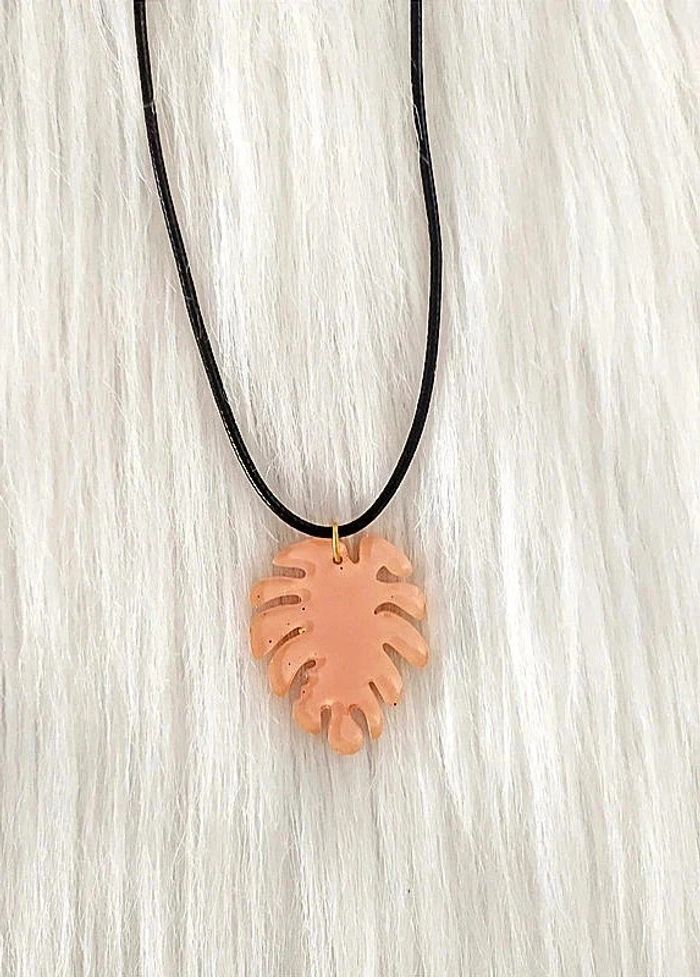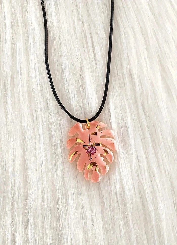 #cencovbijoux Collier pendentif feuille tropicale en résine époxy Longueur du cordon 48-52 cm. Dimensions du pendentif 4 x 3,5 cm.