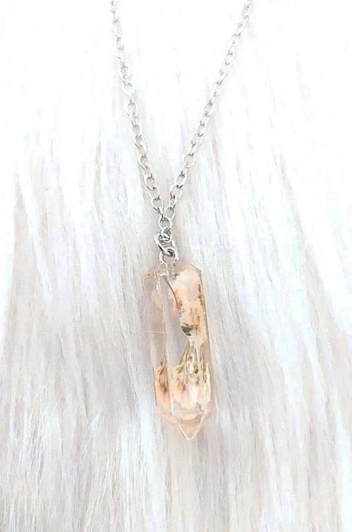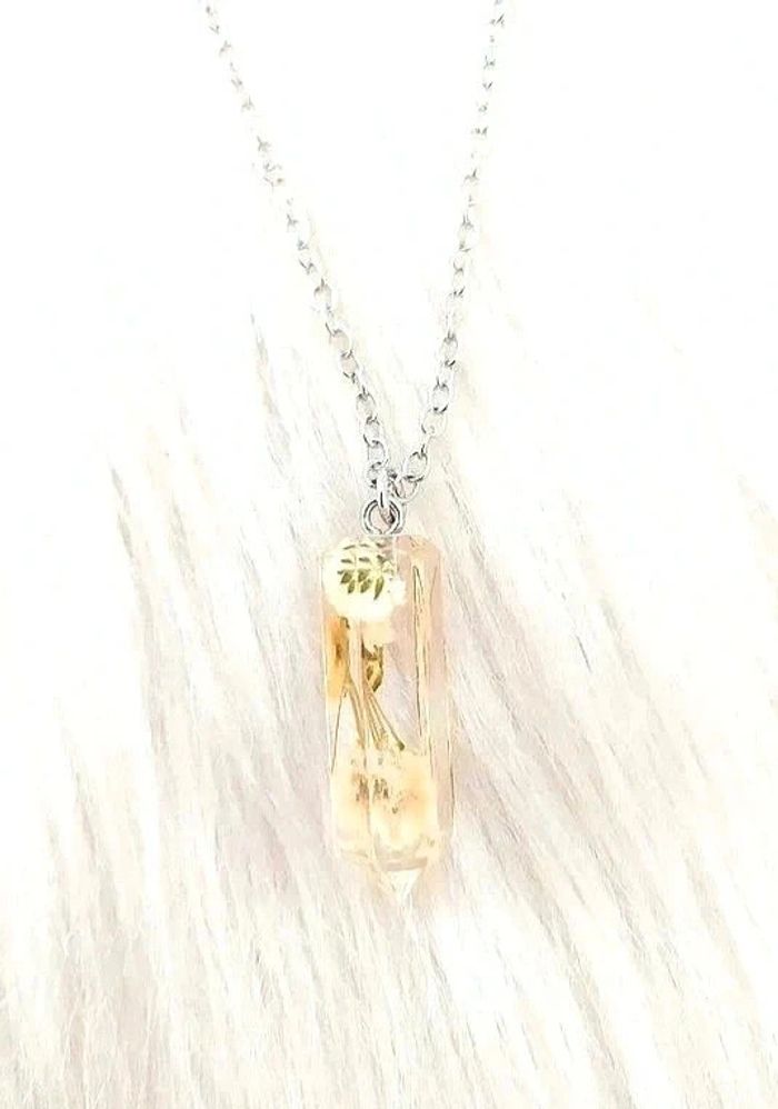Collier chaîne avec pendentif prisme résine avec fleur séchée - photo numéro 1