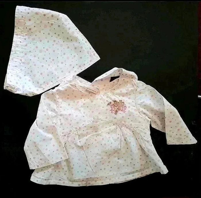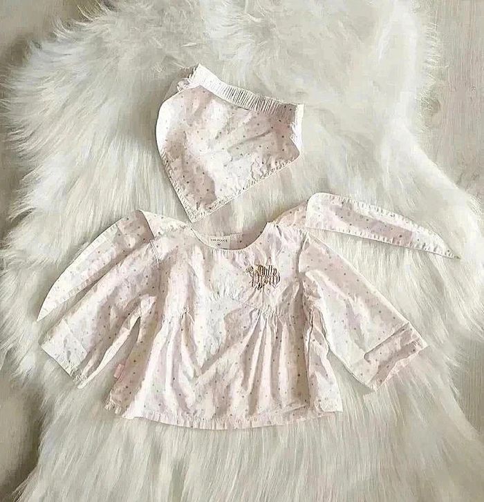 Blouse pois manches longues avec fichu bébé fille 6 mois coton popeline