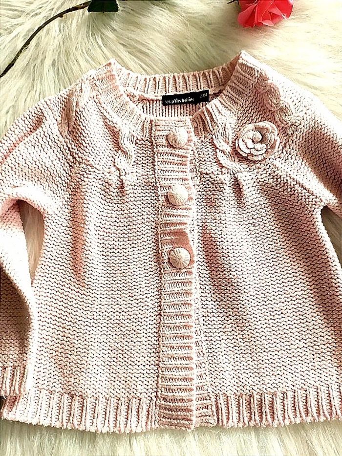 #cencov24mois Gilet coton bébé fille 23 mois Des bouloches. Maille douce coton et acrylique je pense (pas d'étiquette)