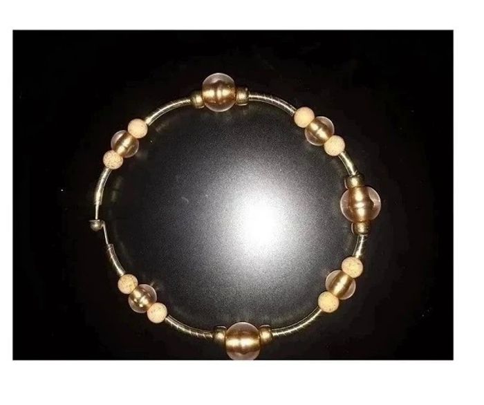 Collier vintage tour de cou rigide fantaisie chic tons doré et rose