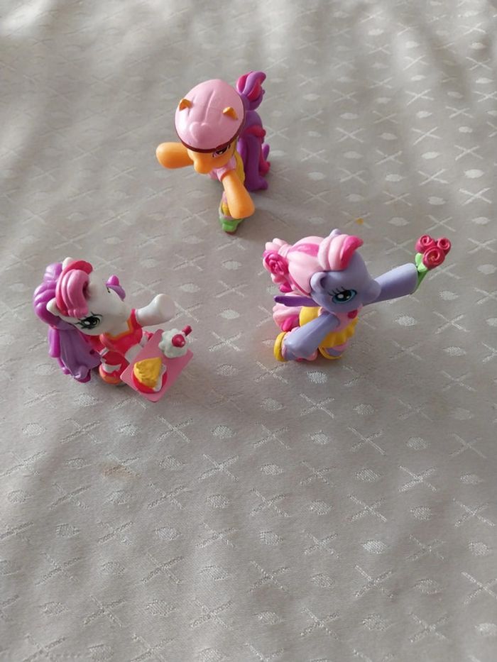 Lot de 3 figurines my little poney Danseuse avec fleurs Serveuse avec plateau Poney fait du roller