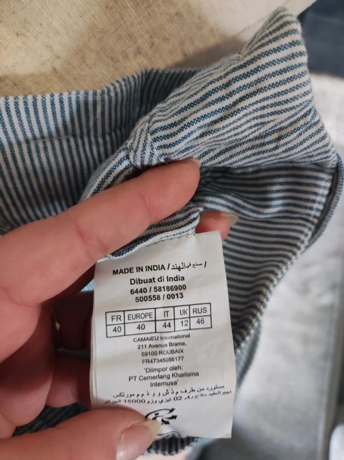 Joli pantalon à rayures droites bleu et blanc T.40 Camaïeu #elomatfemme40