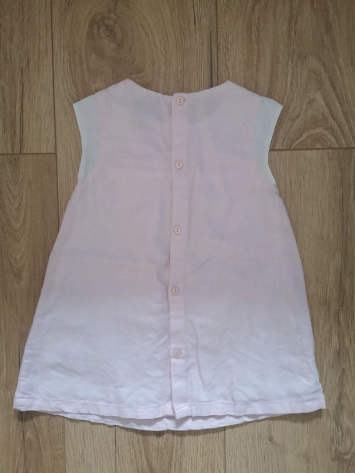 Blanche et rose pale avec petit noeud corail Tissu genre lin / gaze agreable Super classe pour une petite fille idéal occasion mariage baptême..... Pensez aux lots Mondial relay de preference