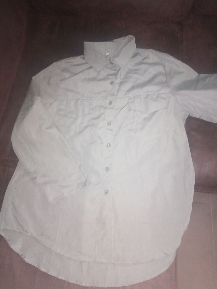 CHEMISIER Taille L Couleur: Kaki uni Forme classique Fermé devant par petits boutons assortis Manches Longues Dimensions: Longueur 70cm - épaule à épaule 41cm - Aisselles à aisselles 52,5cm Chemisier d'occasion ayant été beaucoup porté (bouloché) (Vendu comme sur les photos)